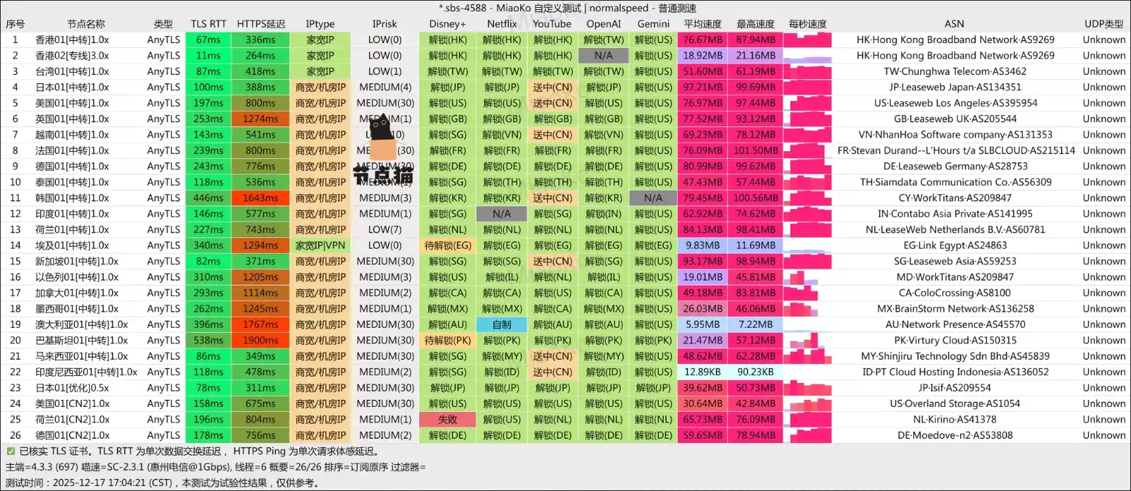 流媒体解锁由脚本测试完成,不一定很准确,部分脚本测速不行的实际解锁是支持的,仅供参考,请以自己实测为准。